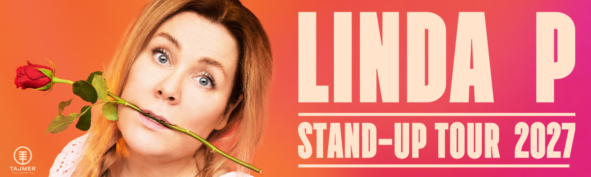 Stand-up Tour 2027 giver dig muligheden for at opleve Linda P live – helt tæt på og præcis som hun er.